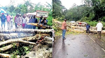 Les usagers du tronçon routier Lébamba-regroupement de villages Kanda, dans le département de la ...