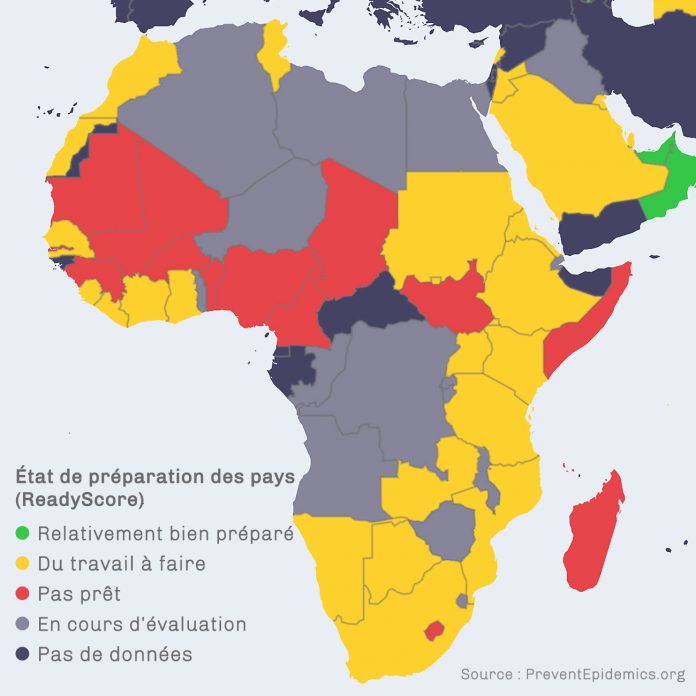 Il utilise un outil de l’OMS qui évalue dans quelle mesure les pays sont prêts à détecter des épidémies potentielles et à prévenir leur propagation, qu’il s’agisse du virus Ebola, du Zika, de la grippe, de la grippe aviaire, du choléra, de la fièvre jaune ou de la rougeole.